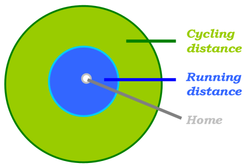 … With cycling, yes there’s bit more to it – but you also get more out of it. Bikes are one of the most efficient machines in the world for harnessing energy. Consider how much faster a bike is than a runner and for about the same amount of exercise. That means you get to see more of the world. In a half hour jog, you might run a few kilometers or so; a half hour cycle you could travel several miles, so you’re not bound to the same or similar routes.